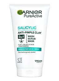 Garnier Pure Active 3V1 ČISTILNI PRIPRAVEK ZA OBRAZ PROTI NEPRAVILNOSTIM. Naša čistilna formula 3v1, obogatenata z glino in niacinamidom, zmanjšuje nepravilnosti in videz por za sijočo in enakomerno polt. Uporablja se lahko na 3 načine: UMIVANJE: Nanesite vsak dan na vlažen obraz. Temeljito sperite. PILING: Nežno masirajte vsak dan za piling kože. Temeljito sperite. MASKA: Uporabite do 2-krat tedensko. Nanesite na obraz in pustite 5 minut. Sperite. Izogibajte se območju okoli oči in ustnic.